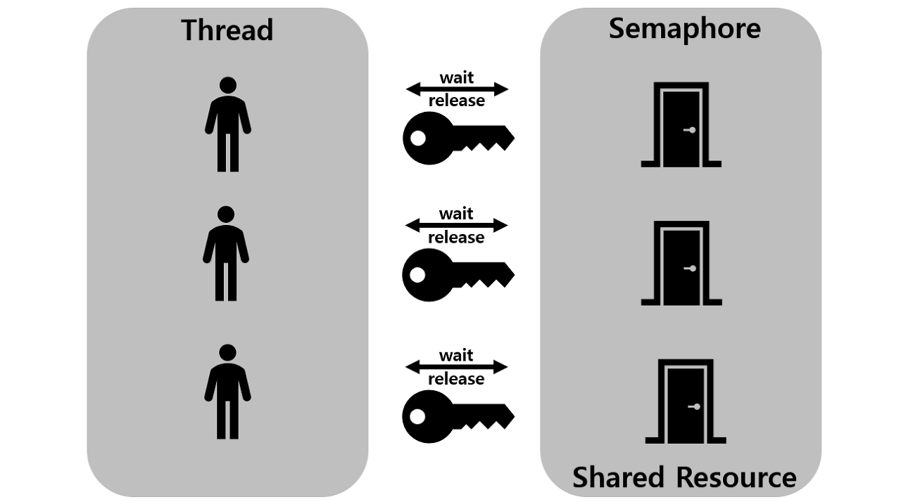 - 계수 세마포어로 사용할 수 있으며, 접근 가능한 공유 자원의 수가 1개일 때는 이진 세마포어로 뮤텍스처럼 사용할 수 있다.
